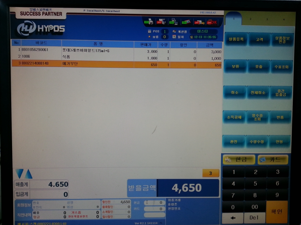 판매 도중 서버와 통신장애 시 그대로 판매가능 (ON-OFF 상관없이 가능)