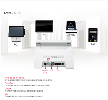 다양한 포트구성(HDMI를 통한 듀얼모드 사용 가능, Ethernet, Serial, USB Port 제공)