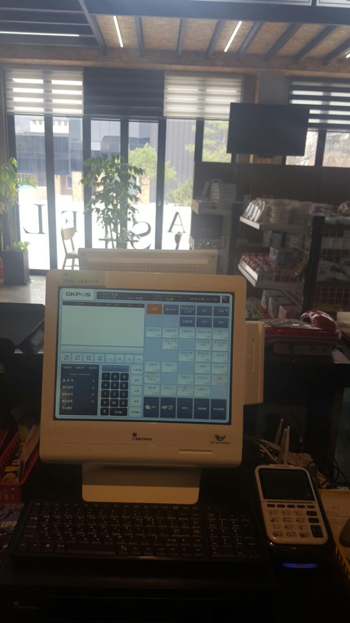 펜션 내 매점 인테리어처럼 심플하고 모던한 포스시스템을 설치하였습니다